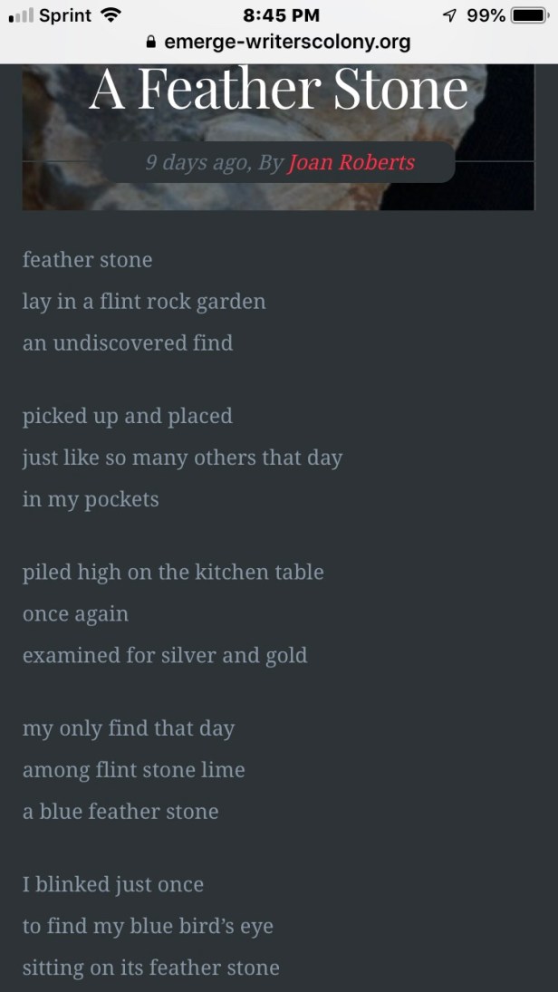 My poem, “A Feather Stone” ~ published in the Fall Issue of the Writer’s Colony eMerge Magazine!